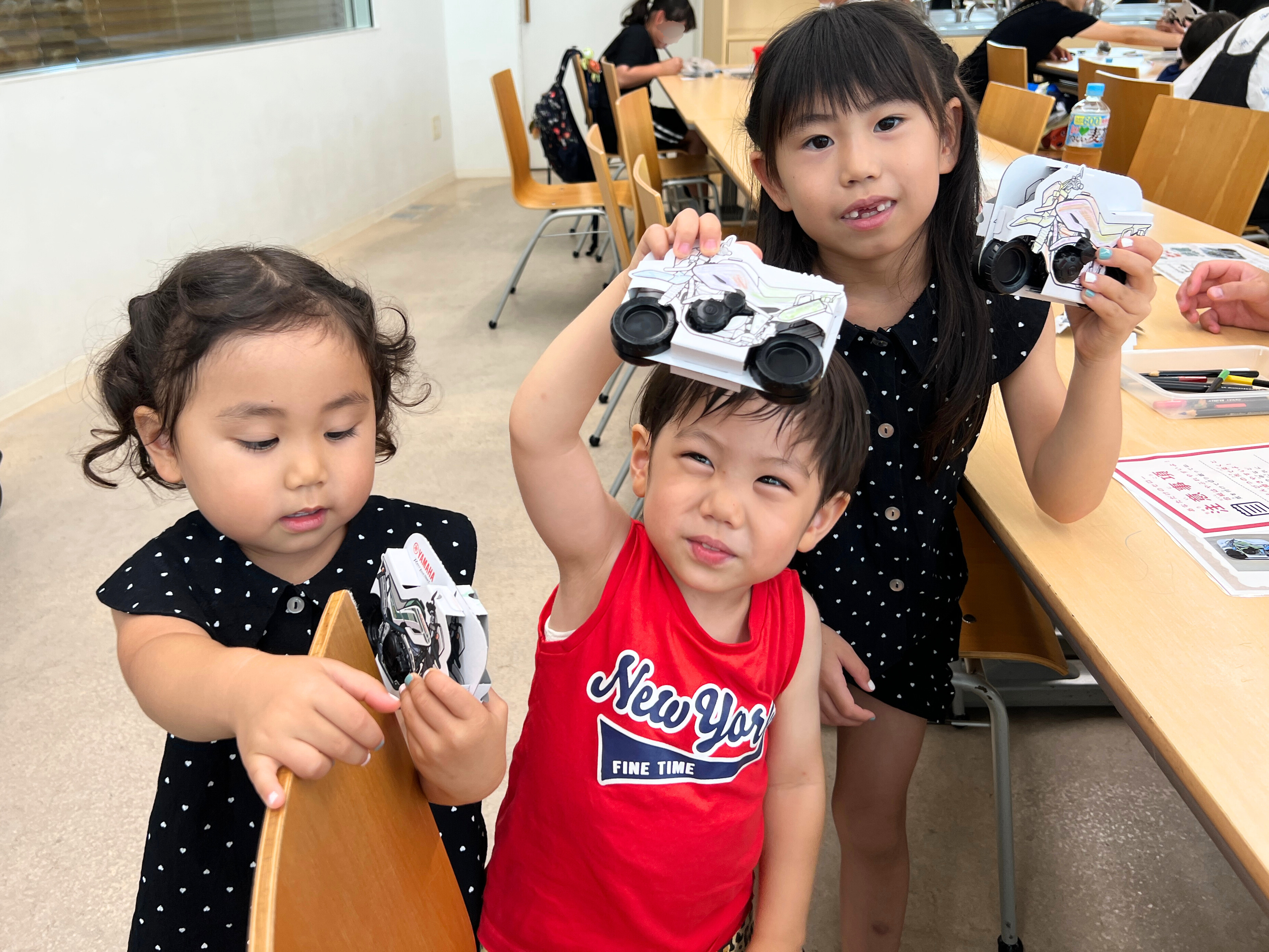 バイクの製造過程で出る廃プラスチックからできたパーツを使い、思い思いの色をぬったバイクをつくりました!