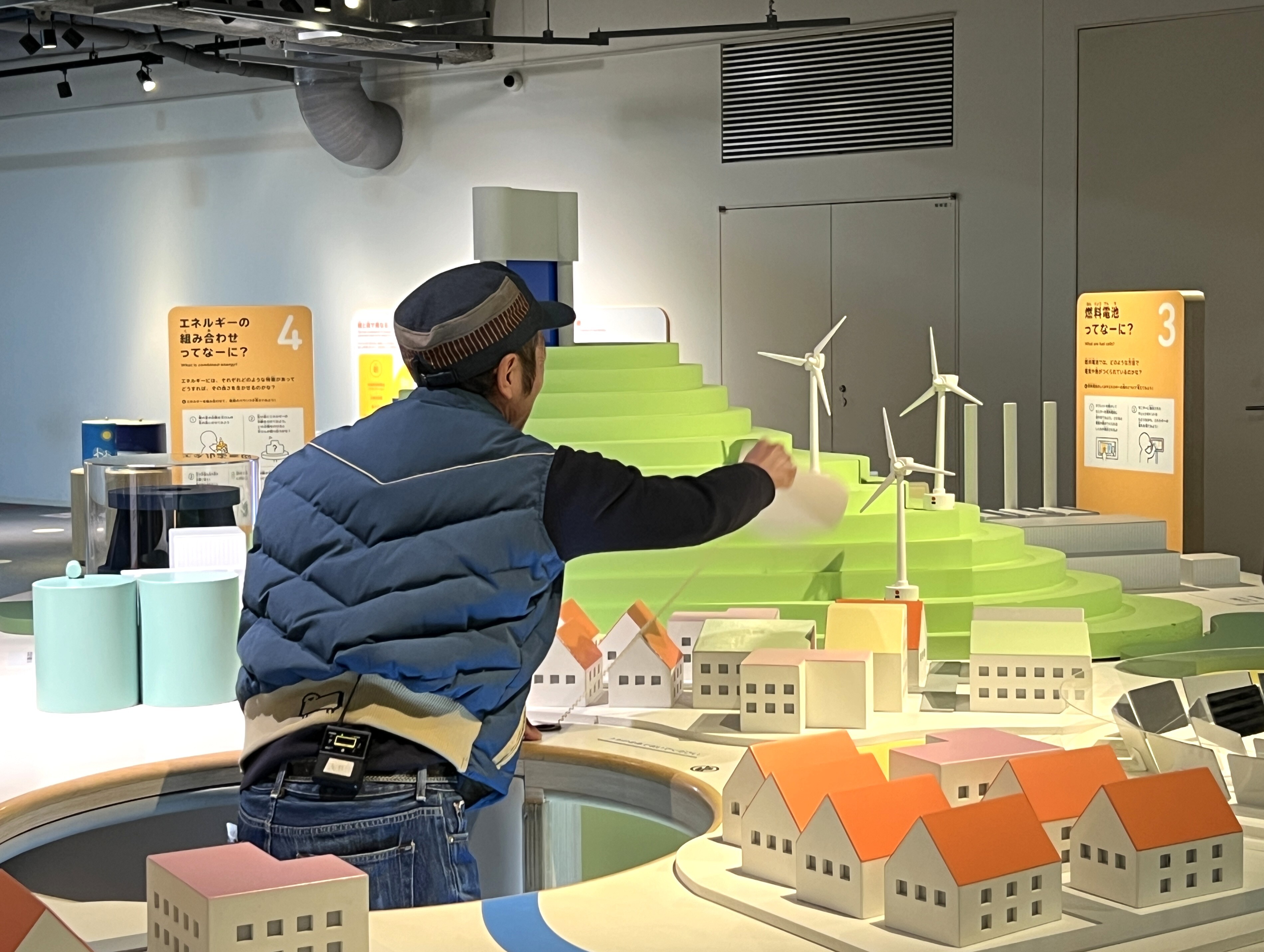 13年振りのご来館では、圧力をかけて都市ガスを送る体験や、風を送って風力発電を動かす体験などしてくれました。