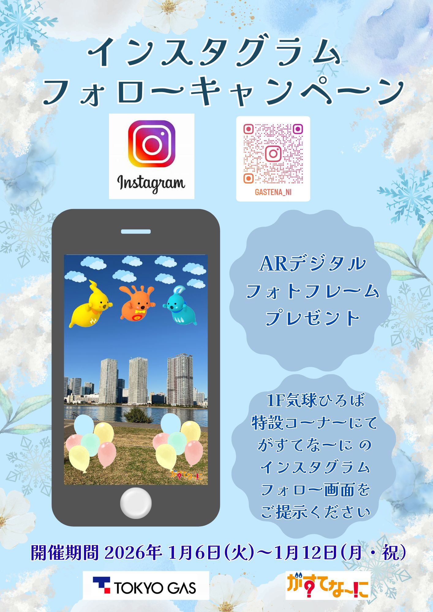 1F気球ひろば特設コーナーにて(※1)、がすてなーにのインスタグラムフォロー画面をご掲示していただいたお客さまに、